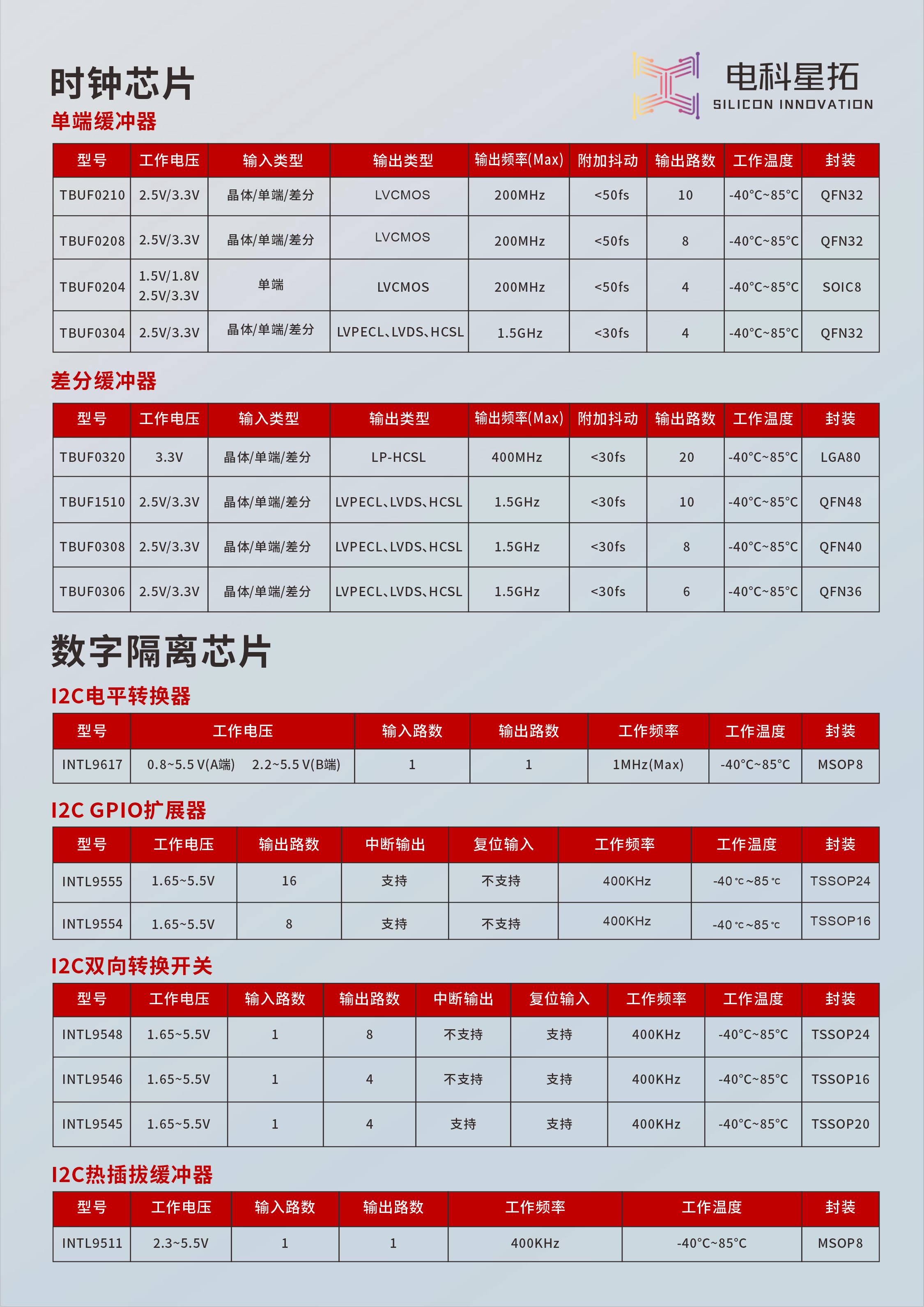 We offer easy-to-use single-end clock buffers with low jitter and low power consumption, which flexibly support single-end, differential, and crystal inputs, and generate multiple LVCMOS clock sources for you to simplify your clock tree design.